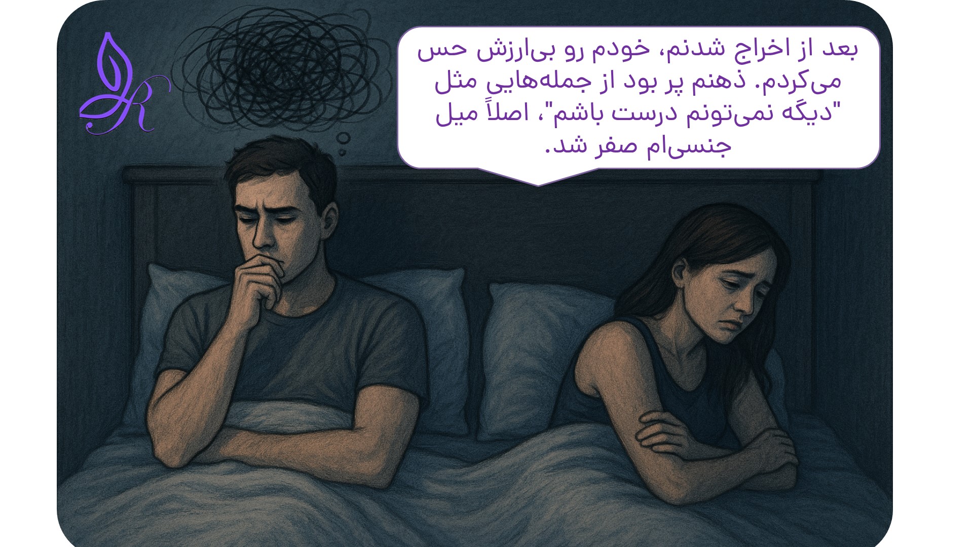 «بعد از اخراج شدنم، خودم رو بیارزش حس میکردم. ذهنم پر بود از جملههایی مثل "دیگه نمیتونم درست باشم"، اصلاً میل جنسیام صفر شد.»